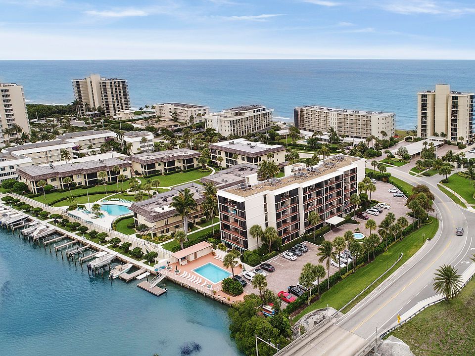 Nestled right between the Intracoastal and the Ocean on exclusive Jupiter Island, this updated condo is in the prime location to enjoy the Florida Lifestyle at it's best, seasonally or year-round! With Southern exposure and views of the Jupiter Lighthouse from your balcony, this intracoastal front community has day docks (plus storage for your kayaks or paddleboards) and it's own private beach access across the street! Watch the boats go by while swimming in your waterfront pool! This updated unit features white wood cabinetry, tile backsplash and granite counters in the kitchen. Both bedrooms are en-suites with tile surround bath or walk-in shower, walk-in closets, and sliding doors out to the balcony. And YES - this unit DOES have a washer and dryer inside it! Offered fully furnished!