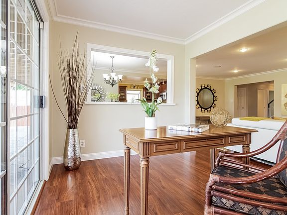 PICTURE PERFECT, GREAT NEIGHBORHOOD, CLOSE TO EVERYTHING! Views! Views! Views! Warm and beautiful Alameda home overlooking the Chuck Corica Golf Course. No houses behind you! One of a kind opportunity to own this spectacular house. Sellers moving after 40 years! This home is spacious and peaceful, with 2,685 square feet of living area on two levels. Designed for relaxation and entertainment, this well cared for and updated home boasts beautiful floors, crown molding, an open floorplan and lots of natural sunlight. The first level includes a large family room/great room with a fireplace, a den, a formal dining room and open gourmet kitchen with custom cabinets, granite countertops and stainless appliances; all with direct access to the backyard and covered patio/deck via 3 sliding doors. Completing the first level are 3 bedrooms, 2 updated full bathrooms and a laundry room. The upper level includes 1 bedroom, a large master suite with balcony and a master bath with dual vanities, large soaker tub, separate shower and a walk in closet. The gated front yard has mature trees and flowers with a covered porch. The verdant rear yard includes a private and covered patio with dining area, built-in barbecue/kitchen and detached garage/recreation room. The tandem driveway is perfect for parking multiple cars or an RV or boat. Fantastic neighborhood near parks, schools, shopping and freeways.