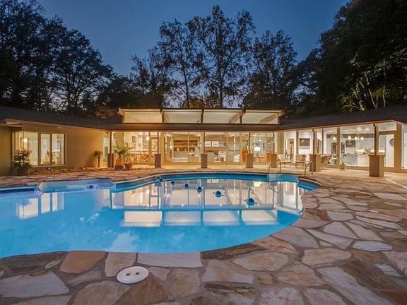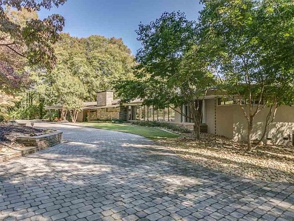 The perfect oasis in the upstate. This absolutely amazing residence is based on a Frank Lloyd Wright design and was the original home of a Winn-Dixie heiress. The home has been completely restored and updated with extra attention to details. From the moment you enter in the front door, you will be impressed with the HUGE dining and great room areas. Features include walls of floor to ceiling windows, beautiful Brazilian pecan flooring, a gorgeous rock fireplace, hidden wet bar with refrigerator, and incredible views of the pool area. The large, light filled kitchen has marble flooring and all the fittings to become a chefs dream featuring granite countertops, double ovens, gas cook top, ice maker, wine cooler, an abundance of cabinets and counter space. The over-sized owners suite has a private entrance to the outdoor area and is fit for royalty. It includes two bathrooms with tile showers, a private dressing area, and its own laundry room! This home also contains four more large bedrooms with private bathrooms, an office, a craft room, and a full laundry room on the main level. A den with a gas log fireplace, safety shelter room and a top of the line theater are located on the lower level. Outside you will find a fireplace, salt water pool, hot tub and outdoor kitchen. As if that wasnt enough, there is a guest house on the property with a full bath, kitchen, laundry closet, studio living space and double garage underneath. All of this is situated on over 7 acres of beautiful property that includes a separate gated entrance to the creek, water fall, fire pit and a private pond. The property offers tons of privacy as it backs up to the Cottonwood Trail Nature Preserve, which is over 100 acres. All of this privacy, conveniently located close to downtown Spartanburg.