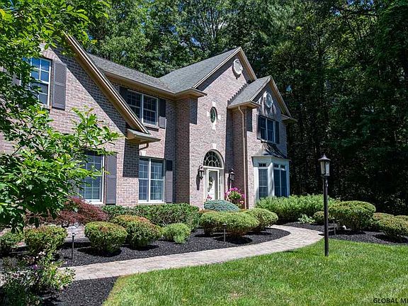 Magnificent brick colonial situated on a cul de sac with a beautifully landscaped and private 1.2 acre lot! Fabulous kitchen with abundant cabinetry and granite counter-tops. Striking 2 story family room with wall of windows and fireplace. Entertain in the gracious living and dining rooms. A stunning 3 season room is the perfect place to relax and enjoy views of the picturesque yard. Amazing master suite with fireplace, beautifully remodeled bath and his and her custom walk in closets. A first floor office, hardwood floors, 3 gas fireplaces and updates throughout adds to this homes appeal . Steps away from Pinehaven County Club and Pine Bush Preserve nature trails. Welcome home!!