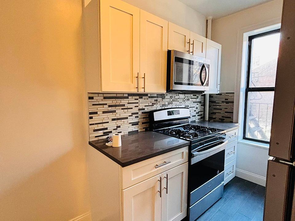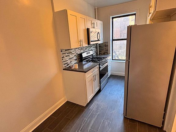 This unit is conveniently situated just one block away from the A express train and 2 Blocks from the 1 Local Train, making commuting a breeze. The apartment itself features a spacious eat-in kitchen equipped with ample cabinet space, stainless steel appliances (including a gas stove, refrigerator, under-the-cabinet microwave, and dishwasher), hardwood floors, three large closets, and a comfortable living/sleeping area with a partial view of the park. Additionally, the building offers amenities such as two elevators, laundry facilities, and an on-site super and porter for your convenience.