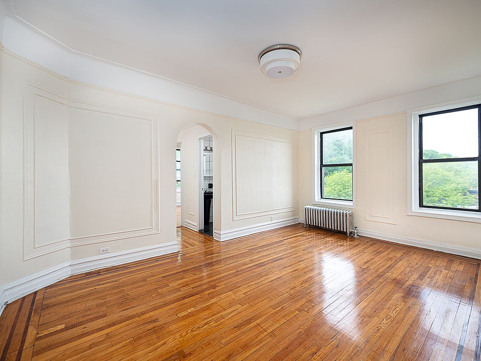 A beautiful one bedroom apartment in the top floor. The apartment has hard wood floor high celling's plenty of closet space and a lot of light. The apartment has a cozy galley kitchen and a huge bedroom that fit a king size bed . The building has two elevators and is close to The A and 1 train is a step a way.