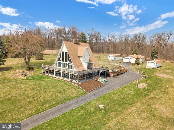 This A-Frame style home has been updated and remodeled to surely impress its next owner! Setting on over 5 acres of flat rural ground, you will love its location and its potential uses. With four separate garages and plenty of storage, any type of hobby or activity is possible! Inside, the home has fresh new paint and modern colors that compliment the classic charm of the home. Anchored by a floor to ceiling fireplace, the vaulted ceilings in the great room have full views of nature's finest setting. The bedrooms feature ample size and hardwood flooring! To make it even more attractive, the lower level is finished and full walk out access to patios and privacy! It's a win-win here: located just minutes off I83, only 3 miles from Ski Roundtop and so close to Harrisburg and York, yet offers you the rural natural setting for any enthusiast!
