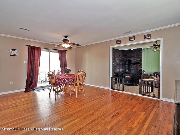 Country style rancher on a large property, backing to woods for privacy. This Off Shore Manor, New Gretna, location, offers 2 bedrooms 1 remodeled bathroom, with converted garage into comfortable family room with wood burning stove. Hardwood floors, spacious kitchen with convenient washer dryer area. The backyard is awesome! Come take a look at this one today!