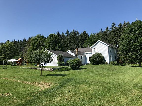Seeking a peaceful, private setting and a house with character in Trumansburg School District? Then this 4 bedroom, 2 full bath homestead on 4 acres is for you. A palatial kitchen opens into dining/family room. A main floor bedroom for convenience and 2+ bedrooms on second floor with laundry. Updated baths with jetted tub and superior finishes. Just over 1800 square feet of comfort & character stretched out on 4 acres with ORGANIC gardens, barns, & 2 car attached garage. Perfect for a hobby farm, horses, & stretching out. Easy commute to Ithaca or Watkins Glen!