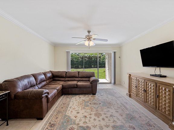 This beautiful 2 bedroom 2 bathroom home comes fully furnished. It has been totally updated with the finest features. Updated kitchen with beautiful wood cabinetry, granite counter tops, tumble marble backsplash, stainless steel appliances and crown molding. Fully tiled and laminate flooring throughout. Recessed lighting and beautiful updated bathrooms. This home shows like a model home! The recreational center amenities include 1 large pool and 1 heated pool, fitness center, pool tables, bocce courts, mini-putt & shuffleboard courts, picnic area with gas BBQ'S, large Clubhouse auditorium that is used for dinner dances, shows, movies, and bingo. So much to do and enjoy! Minutes away from shopping, restaurants, beaches and PBI Airport. Come make this your beautiful home!
