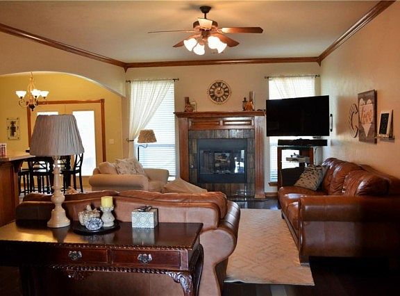 Absolutely beautiful! 3 bed, 2 bath home plus a study in the Choctaw/Nicoma Park School District. The kitchen opens to the dining and living rooms featuring recessed lighting, beautiful cabinets and a double sink. The living room features bamboo flooring and a gas fireplace. The master features a walk-in closet, jetted tub, separate shower and double vanity. The study features bamboo flooring and a large window. The inside utility room features beautiful cabinets for storage and a folding and hanging area. STORM SHELTER!! The spacious backyard features a covered patio. HOA dues cover gated community pool and common area maintenance.