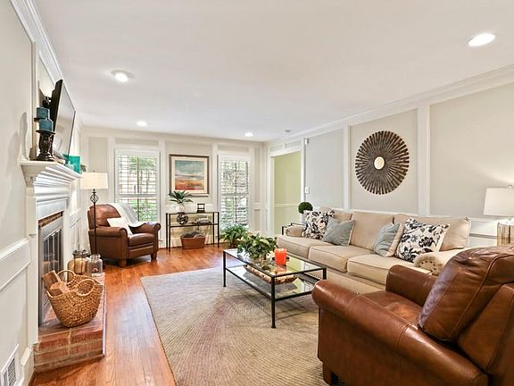 Tucked away on a private, quiet lot in a conveniently located Sandy Springs neighborhood; Spalding Woods. Live close to everything that a world class suburb has to offer in City Springs Center; shopping, dining, and cultural activities. This well-built, well-maintained, brick home has 5 Bedrooms and 3.5 Bathrooms. Beautifully finished solid hardwood floors throughout 1st and 2nd floors. Custom wide Plantation Shutters have been added to most windows. A completely renovated open-concept Kitchen with granite, stainless and Breakfast Counter open to a large Gathering Room that can be used for a Breakfast Area, Homework Hub, or Sun Room. Double doors open to an expansive deck and a private wooded backyard large enough for the biggest playset you can purchase! Rear-entry garage and parking pad could make a great Basketball Court. A cozy Family Room is a wonderful space to watch TV while curled up in front of the Fireplace. Enjoy the Wet Bar, and display treasures on the wall of built-in custom Bookcases. A more formal Dining and Living Room combine space on the first floor for any Holiday entertaining. The second floor has rooms for everyone. An Owner's suite features a room-sized custom built walk-in Closet, dual Vanity Bath with soaking tub and large seamless glass separate shower. Three additional Bedrooms each have dual closets and share a completely updated Hall Bathroom. The Terrace-Level has been completely renovated to include a full Bathroom, Wine Closet, Home Office and spacious TV / Game Room with dual pane windows and upgraded hardwood-look vinyl tile flooring.