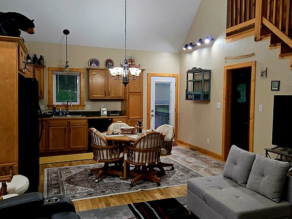Feel like you are out in the forest surrounded by trees in a wood timber style home. The primary bedroom is so large it fits 2 King beds, dresser and work desk. The primary bathroom has both a shower and a large jacuzzi tub to soak in and relax. The other upstairs bedroom also has a King bed and work desk. Washer and Dryer included with the home. Two story vaulted ceiling makes the great room feel very large and spacious. Both front and back porches to sit outside in nature and relax after work are therapeutic. Ample parking. Water is from a well so not an extra charge for the use of the water so you pay for the electric, and the internet. Trash and the lawn maintenance is included in the rent. Spectrum high speed internet available in the home. Central heat and air conditioning with multi zone thermostats to control each level of the house. Large user friendly kitchen. Quiet, friendly, safe, and walkable neighborhood. Furnished if you want or unfurnished, we are hoping to find a long term renter. Pets will be considered if taken care of like a member of the family an extra deposit will be necessary for each pet. No Smoking or Vaping anywhere on the property no exceptions. Caretaker lives in a small separate basement apartment who takes care of the outdoor areas and helps with any other needed repairs. Landlords live on a farm just around the bend and are who you would deal with not an impersonal management company.