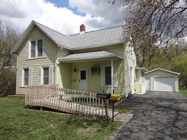 Cute but dated 2 bedroom, 2 bath home. Solid "bones". The creative person/handy man can turn this into a gem. Roof new in 2004. Front porch for enjoying warm summer nights. Enclosed porch on the back. Oversized single car garage. Furnace new in 2013. Great starter home.