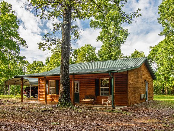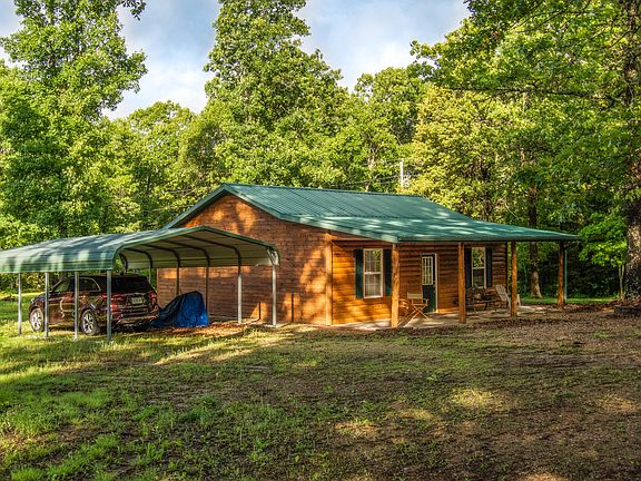 This 2 bedroom, 1.5 bath, 952 square foot cabin on one acre+ is just five minutes from Bull Shoals Lake and the conveniences of Theodosia. There's an open floor plan with vaulted ceilings, cedar paneling and wood laminate floors, custom country countertops, and a dandy boat/carport next to the home. The exterior is half-log and boxcar siding topped by a steel roof. The cabin is situated in a small, well-kept, gated community with similar homes, lots of trees, and good neighbors. This almost level small acreage has a fence across the back property line which is a common boundary with the doctor next door. His home sits on 173 acres, and his house is at least a half-mile away, out in the woods. He manages his land for wildlife, and many of those critters will visit the pond and ground right close to you. Some furniture is included in the price, and you'll have an interest in a shared well and have your own septic system. A golf course is located within a mile of your home. None of the other cabins are for sale. Think about that.