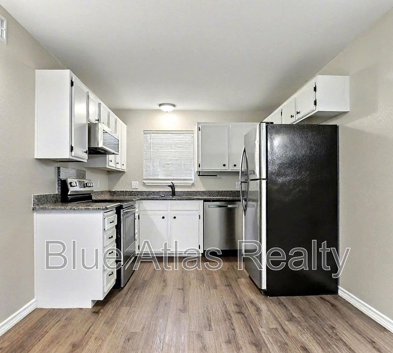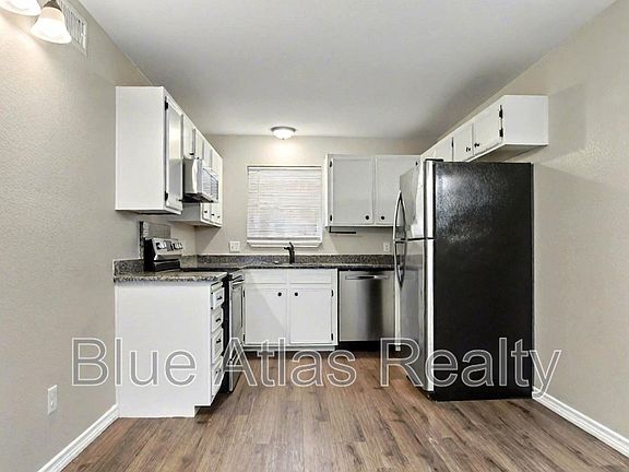 Nice 2-bed, 2-bath single-story home in Denton near I-35 and UNT! Features vinyl floors, updated bathrooms with black fixtures, and an open-concept floorplan with view into the kitchen. Kitchen offers stainless-steel range, dishwasher, microwave AND refrigerator. Both bedrooms are separate from main living area. Two full baths with tubs and subway tile shower walls. Includes plenty of off-street parking and laundry room onsite! Great location close to school, shopping, dining, and highways!