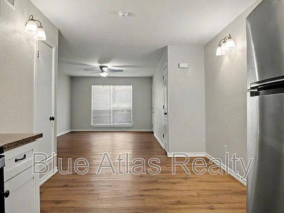 Nice 2-bed, 2-bath single-story home in Denton near I-35 and UNT! Features vinyl floors, updated bathrooms with black fixtures, and an open-concept floorplan with view into the kitchen. Kitchen offers stainless-steel range, dishwasher, microwave AND refrigerator. Both bedrooms are separate from main living area. Two full baths with tubs and subway tile shower walls. Includes plenty of off-street parking and laundry room onsite! Great location close to school, shopping, dining, and highways!