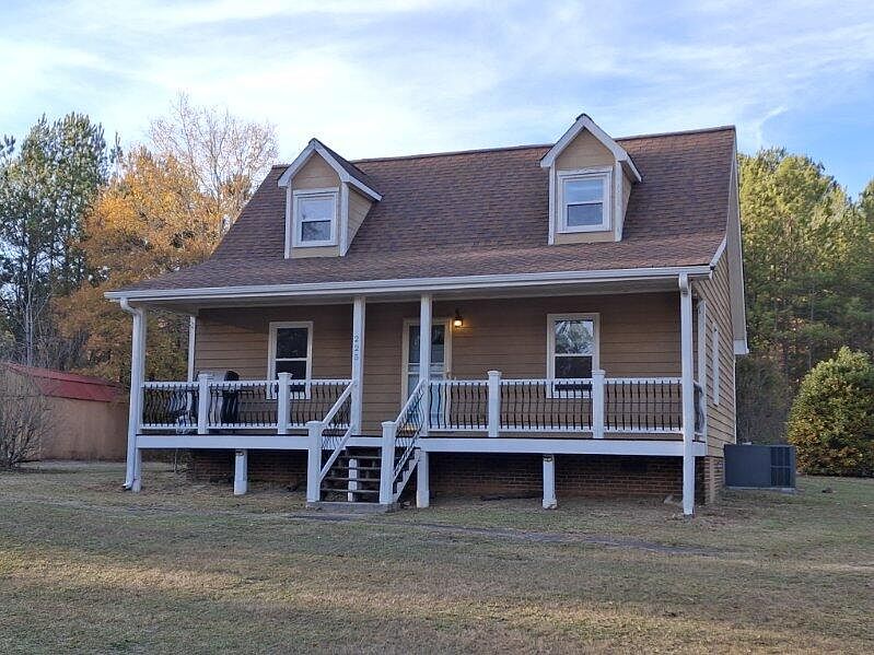 COZY and CHARMING!! Located Just at the Edge of Town... This 3BR/2BA Cape-Style Home is Situated on an AMAZING 1.2 Acre Oversized Corner Lot w/Lots of Possibilities and Plenty of Curb Appeal!! Even Having a Horse Here Would be Allowed!! Home Boasts a Large Open Front Porch Upon Entry and a Very Tranquil View.... Then, a Small Foyer Area Leads to an Open Living/Dining Room Combo Space and a Cozy Kitchen w/Tucked-Away Pantry, Additional Storage Closet, Plus a Refrigerator, Range and Dishwasher That All Stay!! The Primary Bedroom is Located on the 1st Floor Along with an Upgraded Owner's Bathroom, and the Laundry Area is at the Rear of the Home Located Within the Recently Refinished Rear Sunroom!! Upstairs You Will Find 2 Additional Bedrooms, Each w/Dormer Window Views, and an Additional Full Bath w/an Extra Large Bathroom Vanity!! This Home Has Hardwood Floors Almost Completely Throughout, Several Ceiling Fans, Newer Lighting, Newer Windows, Plus a Newer Roof, Newer HVAC and a Completely Encapsulated Crawlspace Too!! A Good-Sized Storage Shed Outside Will Remain Along w/a Dog Run Kennel (Which Could Maybe Convert Into a Chicken Coop), Some Raised-Bed Planting Spaces, 2 Driveway Entrances, and an Extra Concrete Slab for Possible Future Additional Outbuilding, Garage, Mini Barn, or Carport!! Come See This Very Special Home in Such a Very Lovely Area and Enjoy All That This Property and It's Surroundings Has to Offer!! Call Now!!