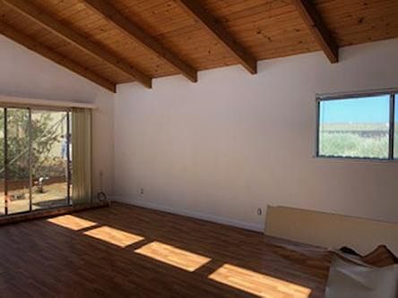 This completely refurbished condo, is located in the far corner of Sunset Terrace, a very quiet and desirable community on the far edge of Los Osos, and is surrounded by the State Park with miles of hiking trails, and Sea Pines Golf Course. Just across the street is the Bay, with kayaking and sailing. This town of 15,000 residents has supermarkets, service stations, top notch schools and medical facilities. There is bus service to neighboring towns. This is a small, quiet community, just 15 minutes scenic miles to San Luis Obispo and Cal Poly University, and 8 minutes to the town of Morro Bay. The kitchen has all new appliances plus a large pantry. The living room has a patio that backs up to the golf course, and one bedroom has a golf course view. Both bedrooms are 14 feet by 12 feet, each with 14 feet of closet. Bathrooms are bright, with tub, shower, new fixtures, and large skylights. There is new LVP planking throughout that matches the wood cathedral ceiling and beams in the living room. There is a semi enclosed carport and storage room with shelves plus plenty of room for bicycles or other storage. Laundry is across the patio and shared with just 2 other residents: one each in units A and B. Gardener, trash, exterior lighting and water are included in the rent. No smoking of anything, or vaping, anywhere on the premises and will constitute a violation of the lease. Mature, inside dog or cat, under 8 pounds considered with references and additional deposit. References from prior landlord required. One year lease. Phone calls preferred for faster response. The LVP flooring must be 80 percent covered by tenants' carpets. No tandem parking in carport, no facilities for electric vehicles.