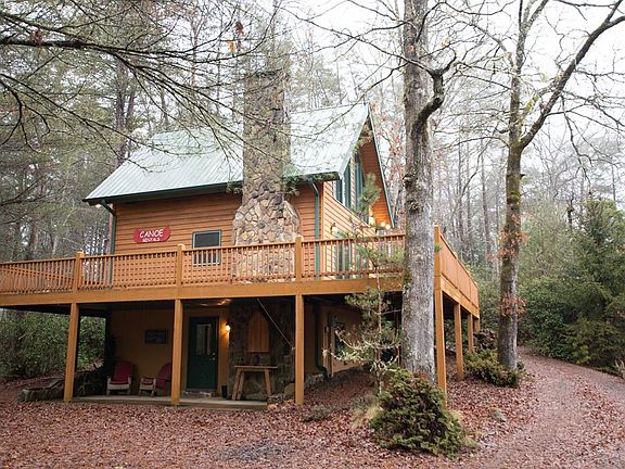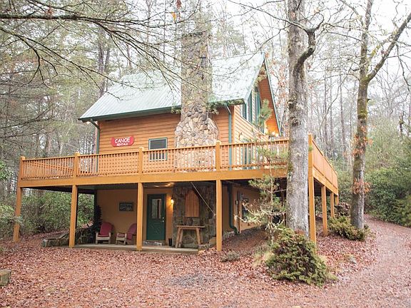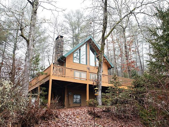 Franklin NC Cabin in the Mountains! Super privacy on this gorgeous 8.54 acres shared with some of natures most exquisite wildlife! You will drive along the Little Tennesse River to get to this jewel! This home is impeccably clean and well maintained. Full wrap around deck, monster long range view ALL YEAR. It is a 2 bedroom, 2 bath cabin with a full size LOFT for an extra bedroom if you like. Vaulted T&G / Beamed ceilings, and a wall of windows to help you enjoy the long range view from anywhere in on the main level. There are two good size bedrooms on the lower level which has both INSIDE and OUTSIDE access for your convenience. You will be amazed at the cool accents and upgrades implemented in this cabin. You'll also be happy to have the powered workshop (detached) that has water as well. The home has attractive hardwood flooring throughout, roomy, breezy, and it comes completely FURNISHED with classy mountain furnishings... and you can hike and fish, and there are Native American & NC STATE lands adjacent to this property that will ensure your privacy..