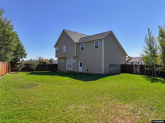 Best buy in the neighborhood! This 1,730 sq ft home sits on a spacious 16,796 sq ft corner lot in the much-loved Indian Lookout Subdivision in Lander, WY. The mature lawn, tasteful 2-story design, peaked roof and covered entry porch contribute to this home's excellent curb appeal. Walk into a large, south-facing living room with updated flooring, offering an immediate bright and inviting experience! This home has a traditional floor plan and style with well-defined and easy to furnish spaces, including a formal large dining room, sizable kitchen and a large living room! You'll immediately feel at home, big in its sq footage, yet this home maintains a cozy feel. The kitchen has ample cabinetry, multiple pantries and generous counter space with a breakfast bar. The full back of the home has windows and a patio door facing the lovely backyard. The primary bedroom has a walk-in closet and an on-suite bathroom. Room for all, the home has 4 total bedrooms, 2.5 baths. One of the bedrooms is large enough to also be a secondary family room or recreation room in lieu of a 4th bedroom. An efficient design, the laundry room is on the same level as all four bedrooms, so no hauling clothes up and down the stairs. The 20' x 25' garage fits two cars with ease. The corner lot provides ample opportunity for off-street parking and space to build a workshop, or just enjoy the wide open landscaped yard. You'll love the location at the back of the subdivision, across from the beautiful greenbelt walkway, and it has a picturesque view of the mountains in the distance. Listen to the birds, gaze at the views and enjoy the serene open space from the privacy of your edge of town location! This home is located in one of Lander's highest selling and most-sought subdivisions that has walking paths, established greenway, larger lots and wide, quiet streets. Don't miss the opportunity to enjoy this spacious home in a prime location at an unbeatable price!