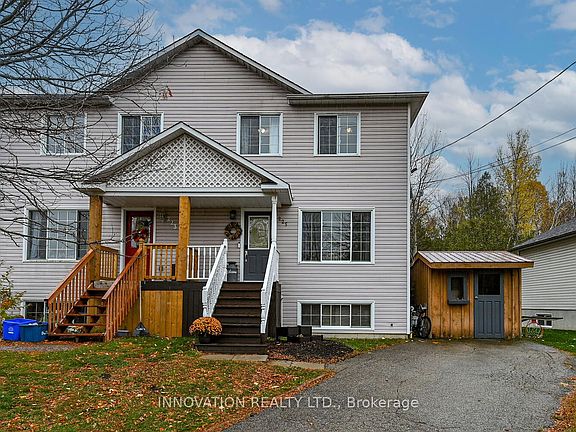 Welcome to 225 Charlotte St. This bright and inviting 3+1 bedroom, 2-bath, two-storey semi-detached home, ideally located in the picturesque village of Merrickville. Perfect for first-time home buyers or investors, this freshly painted home offers comfortable living in a sought-after community known for its small-town charm and beauty.The main floor features luxury vinyl, and a functional layout with a cozy living room, spacious dining area, and a well-appointed kitchen, ideal for everyday living and entertaining. Step through the dining area to your large, fully fenced private backyard, complete with a large covered deck and no rear neighbours perfect for relaxing or hosting friends and family. Upstairs, you'll find three comfortable bedrooms and a freshly updated full bath. The partially finished basement adds even more value, offering a fourth bedroom, a 2-piece bath, and a convenient office nook-great for guests, teens, or working from home. Located within walking distance to schools, the Rideau River, shops, restaurants, and all of Merrickville's historic amenities, this home blends comfort, convenience, and character. Don't miss your opportunity to make this charming property your next home or investment in one of Eastern Ontario's most desirable villages! 24 hr irrevocable on all offers as per form 244. Hydro $246/M (equal billing), gas $75/M, water/sewer $232/every 2 months