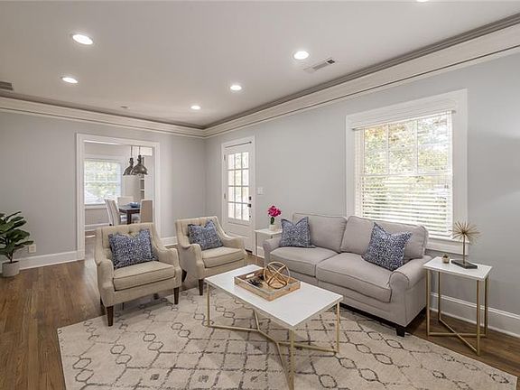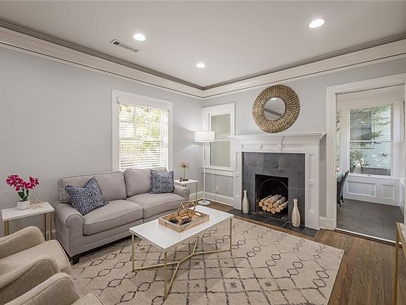 This gorgeous 3-bedroom brick home features the charm of bygone days with quality and comforts you expect from a modern house. From the curb of a quiet, tree-lined street in Decaturâs strollable Chelsea Heights, it sits atop a terraced and landscaped front lawn. Tucked beside it at the end of a private drive is a fully finished carriage house offering an additional bedroom and bath and 1-car garage, for a total of 4/3. Stunning detailing throughout: wood-burning fireplace, hardwood floors, lovely crown molding, glass doorknobs. Outdoor lovers will pine for the sun room, the screened back porch, or the open patio in a private back yard. A kitchen apportioned with high-end stainless appliances and marble counters joins the dining room via a breakfast bar. The charming master bedroom boasts two closets and french doors leading to a large en-suite bathroom with double vanity, walk-in glass shower, private water closet, and walk-in closet. Two additional bedrooms here share a hall bath. Best bonus: The 2-story carriage house with 1-car garage, workout studio, storage space and full bathroom on the ground floor, and a large open area for home office or fourth bedroom above. The main house also features a partial basement and attic, both with stairs, that offer more storage options.