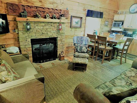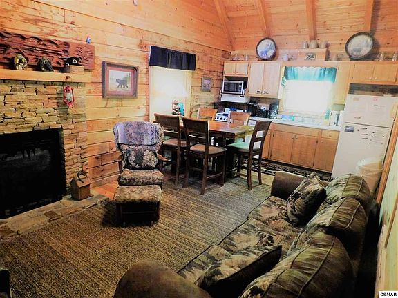 BACK ON THE MARKET! This cabin is turn key. "A Hearts Desire" is a custom-built cabin with great amenities, not to mention great location. Minutes from I 40 and the Sevierville convention center, only 20 minutes from Dollywood and Splash Mountain. This 2 bedroom, 2 bath unit that sleeps 8 is charmingly rustic in its wooded setting. On the main level you will find a small, but fully equipped, kitchen. A bedroom with a queen bed and a bunk bed with full on bottom and twin on top. A full bath including a shower/tub combo, and a living area with queen sofa sleeper, a twin sleeper sofa, chair, and a flat screen TV. In the upper loft area level, you will find an additional queen bedroom with TV, also with a full bath shower/tub combo. This loft area bedroom overlooks the living area, and has a small widows walkway. The back deck has a screened in porch that houses the hot tub, and offers rocking chairs, perfect for rocking your cares away in this quiet, peaceful, and serene setting. While the front porch offers a different perspective on the wooded views, there are 19 steps leading down to the entrance of the cabin from the parking that will comfortably accommodate up to 3 vehicles.