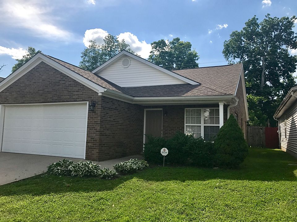 Nice full brick ranch, offers 3 bedrooms and 2 full baths. Large open Living room-dining and kitchen with vaulted ceiling. Floors are laminate hardwood in LR,DR,hall and master bedroom, tile in baths. Separate laundry room, fenced back yard and 1 car garage. Tenant is responsible to maintain lawn and landscaping .