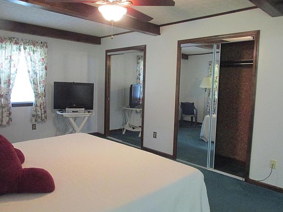This is a very spacious home with lots and lots of storage; Vaulted ceiling in L/R with exposed beams; 2 gas fireplaces; lg. eat-in kitchen; stainless steel appliances; dining room; screened porch; MBR w/2 cedar lined closets; MBA; Vinyl siding & brick; replacement windows; 1 double attached and 1 over-sized single detached garage.
