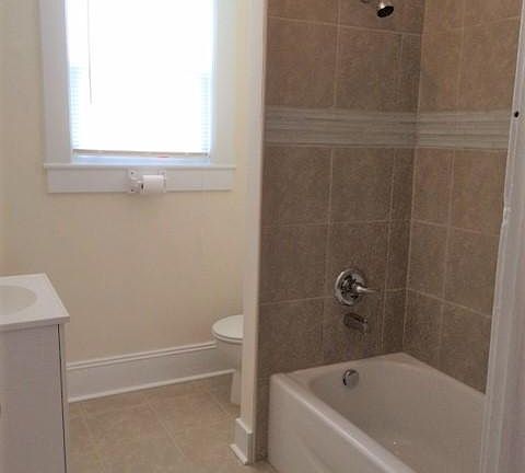 This end-unit, apartment has 3 bedrooms and 1 bathroom. The main level features a large, open living room, dining room and kitchen. Upstairs, there are 3 bedrooms and a beautifully remodeled full bathroom, with tiled tub surround and tile floors. The original wood floors on the 2nd level have been refinished. There is also an unfinished basement, with washer/dryer hook-ups and additional storage space. Natural gas furnace and central air conditioning. Off-street parking. To qualify, applicants must have excellent credit, at least 6 months of employment, and excellent rental references.
