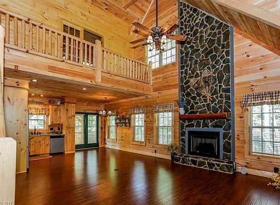 Custom built 2900 sq ft, log home with 3 master suites, large den and office, all situated on 4.45 acres of privacy and within walking distance to the Broad River and Mirror Lake.