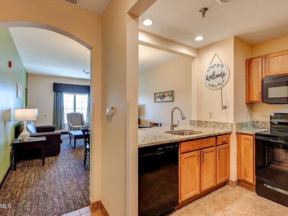 HIGHLY SOUGHT AFTER CONDO IN THE RESORT AT GOVERNOR'S CROSSING! 1BD/1BA.This condo has it all. Gorgeous wood and tile fireplace in the family room. One of the few condos that has a fireplace. Dining room. Fully equipped kitchen with granite countertops. Modern furniture, decor and in unit washer and dryer. Beautiful views of the mountains from your private deck. This resort is fun for all ages ages! Relax in the lazy river, hot tub or by the fire pit after working out in the exercise room. Enjoy the indoor or outdoor water parks. Play on the playground or in the arcades. This condo is in walking distance of restaurants and shops. HOA includes water, sewer, insurance, cable, internet, access to all onsite amenities and exterior maintenance. CALL TODAY TO SCHEDULE YOUR PRIVATE SHOWING!