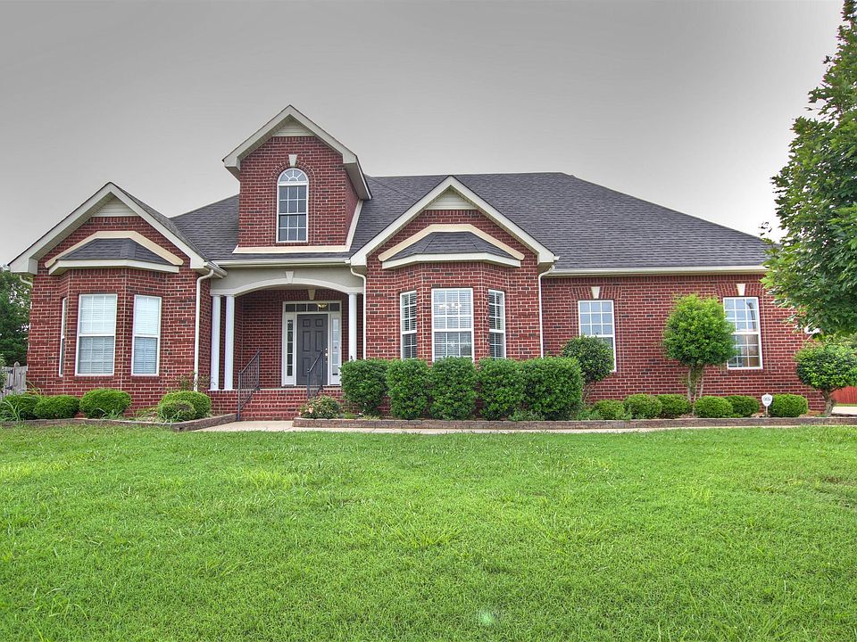 All brick home w/ neighborhood sidewalks. Roof 5 yrs. old. Brand new HVAC unit up- downstairs less than 5 yrs. old. Fireplace in living room. Hardwoods, tile, fresh paint & new granite tops & cabinetry. All bedrooms down with play area, office and large rec space with storage up. Home backs up to treeline & has nice size deck for entertaining.
