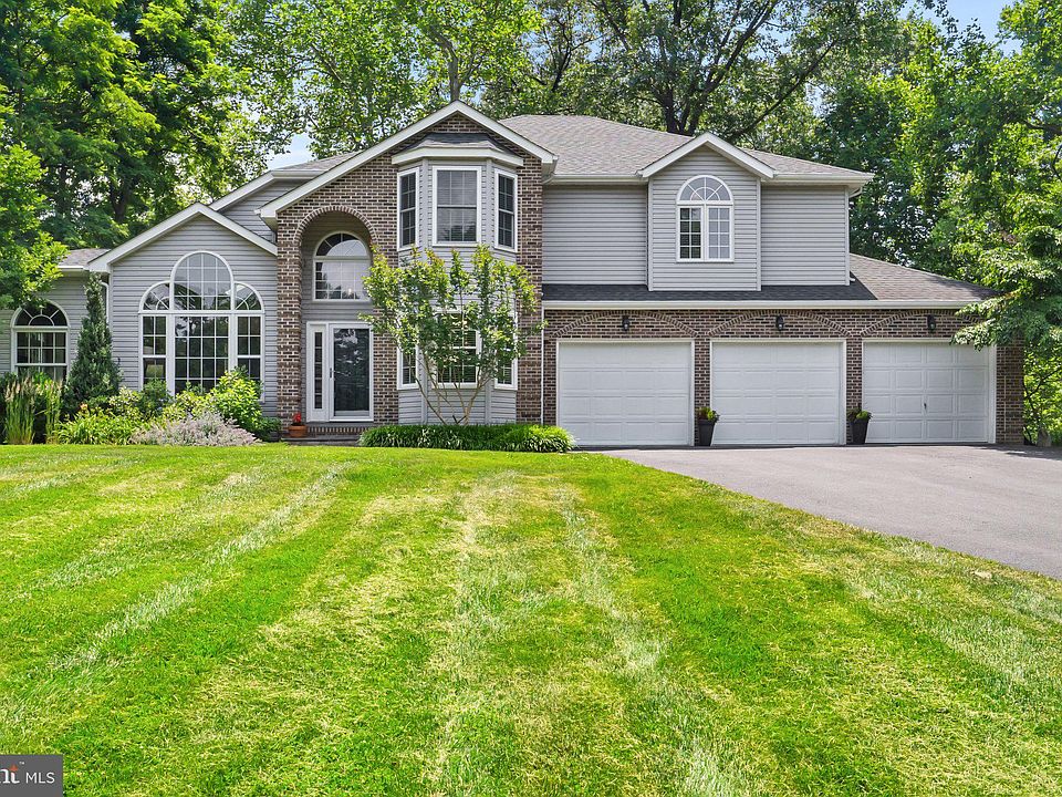 Before even entering this elegant home, you know you’re looking at something special. The handsome brickwork combined with unique architectural features holds promise—that delivers. And sitting on five unblemished acres, against a backdrop of mature hardwoods and attractive landscaping, it provides significant privacy. But it’s everything inside that both surprises and pleases. Greeted by cathedral ceilings, oversized windows, bright hardwood floors, and contemporary paint, this floor plan is a breath of fresh air. Step down into a living room with plenty of space for furniture and a fetching wall of usable built-in shelves and cabinets. The central staircase offers a touch of whimsy with its chalkboard side perfect for kid or adult games—or your message of the day. The dining area pleases with a view of the great outdoors and space for a formal table plus standalone pieces—and even has an adjacent mini-counter where you could snack or work. Enter the tile-floored kitchen with plenty of cabinets, a cooktop island, double oven, and butcher-block style open shelf units. You won’t lack for storage or counterspace in this gourmet kitchen. Transitioning seamlessly to the cozy family room, with space between for a casual dining set-up, you reap additional lounge space, with a gas fireplace anchoring one wall and big glass doors leading to a back deck outside. A half-bath, extra room (perfect for an office), and mud or laundry room with access to the three-car garage round out this level. The four bedrooms and two full baths are upstairs. The primary bedroom wows with its generous space, window seat, walk-in closet, and spectacular en suite bath with gorgeous tilework, a sunken tub, separate shower, and a double vanity with abundant storage. The other three bedrooms come in welcome sizes with dedicated closet space. Head outside to enjoy your deck and the bricked patio in your lush garden and natural oasis. There’s even a basketball court off the driveway. This is a must-see if you long for a spectacular house with elbow room while still having a Winchester address.