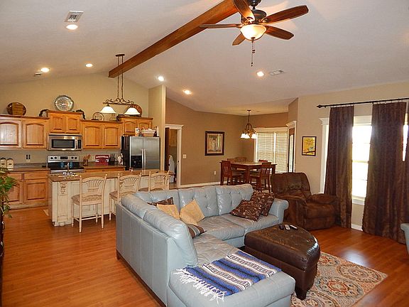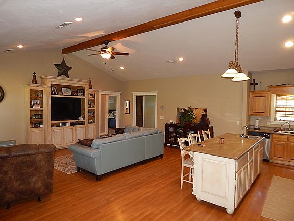 Open Space! Nice 3BR, 2BA home with vaulted ceilings in living area, open kitchen, living, dinning area, split floor plan, large covered front porch with great views to the West, nice covered patio on back, laminate, tile, and carpet, whirlpool tub and walk in shower in master, walk in closets, double sinks in both bathrooms, on 5 acres of pasture. Would also offer the house on about 1 acre for $199,000. Natural gas, Shared Well located on the neighbor, to have well agreement recorded before closing. Deeded easement from county road 506 to the 5 acres and house. Call Today!