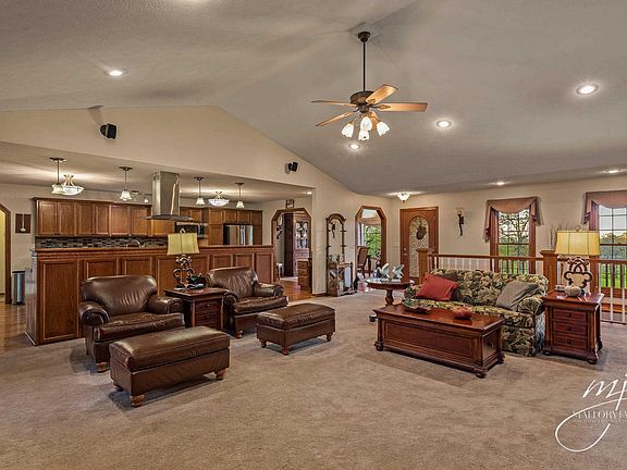A true show place, on a quiet paved county road, overlooking the Ozark countryside, 5 bedroom, 3 bath, Cathedral ceilings, includes entertainment center TV & stereo with Klipsch speaker system. All brick built in 2000 with 4466 sq. ft. on 5 beautiful acres, large 24X50 workshop/garage with concrete floor & electric a 36X24 RV port, all move in condition, and less than 5 minutes to Mtn. Home sq.