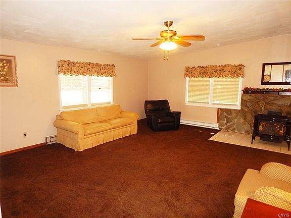 Constantia Ranch with Over an Acre to Roam! 3 bedroom, 1-1/2 Bath. Partially finished Walkout Basement and 1-1/2 Car Attached Garage. This has everything you need! Large Open Kitchen with Formal Dining Room makes Entertaining easy! Enjoy the Fully Screened Back Deck while taking in the view of the creek. The Great Room with Cathedral like ceilings and Propane Stove will certainly impress. Head to the Bonus space in the Basement to find 2 Rooms that will give you options galore. Don't forget the Pellet stove and workshop along with even more room for storage! Come take a tour today!