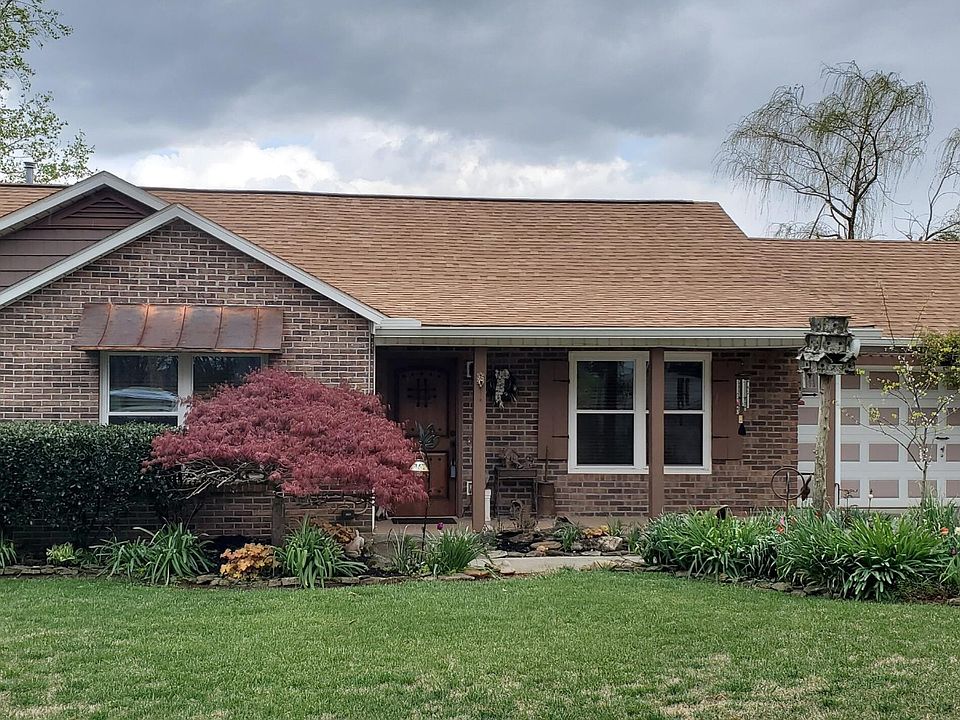 Absolutely unique one level ranch home on the most beautifully landscaped yard, featuring endless floral gardens & plantings, Koi pond, & stone paver patio! The home offers cathedral ceilings, a nice island kitchen with adjoining dining room. Kitchen opens into a stunning sunroom addition where you can view the landscaping in the private back yard and capture the distant mountain views! Living room with corner stacked stone fireplace & custom carved cedar mantle. Office/library room adjoins dining area. Extensive dental molding adds an elegant touch in several rooms. Quality laminate flooring & tile flooring. Custom front door. Other artistic touches make this a one-of-a-kind find! Energy-saving solar panel on roof! 2-car garage! Pull-down stairs to attic storage. HVAC & roof approx 4 yrs