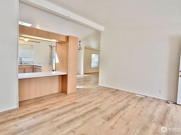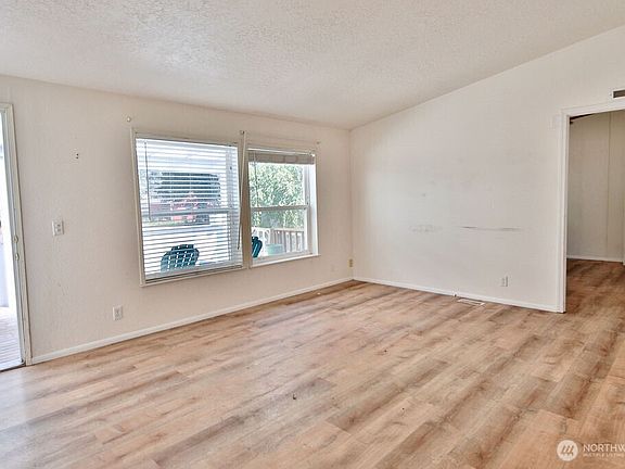 1 acre with two addresses and plenty of room. 3 bedroom 2 bathroom home is 1539 sq ft. Primary bedroom has an ADA sit in bathtub and walk in closet. Two large living rooms. New cabinets in kitchen. Skylights and ceiling fans. 480 sq ft shop with woodstove plus attached 552 sq ft garage with low rise steps into the house. Additional smaller shop on property in poor condition. One well, two septic systems and two power meters. Chicken coop in the back yard, raised beds in the front yard. Great southern exposure and room for gardens. Around 50 trees on property including two plum, one cherry and one apple tree. No HOA. Mountain View through the back trees.