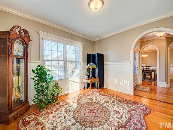 Hard to find 5 bedroom home with magnificent custom workmanship! Open floor plan features elegant moldings, arched doorways, well-appointed dining room, open bright family rm w/built-ins & FP. Gourmet spacious kitchen with counter seating, granite & SS appliances. Private first floor guest suite. 2nd floor has huge finished bonus room & walk-up attic. Large master suite w/ trey ceilings & en suite. Screened porch overlooks private back yard oasis. Community Pool. Golf, shopping & new 540 nearby!