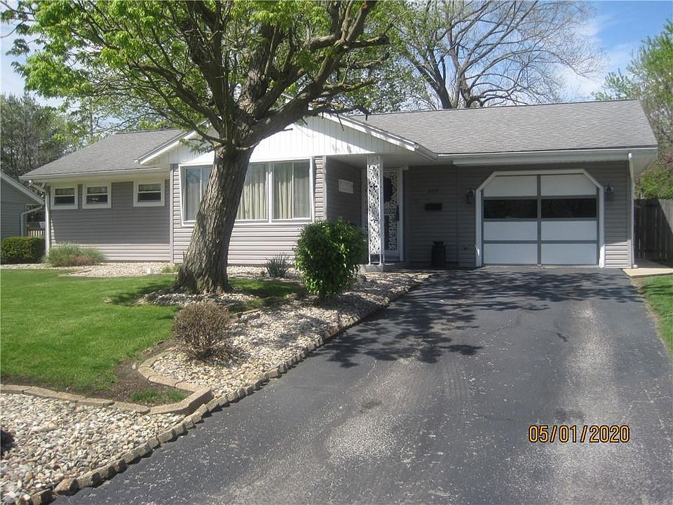 Beautifully done ranch home with large family room with fireplace. The oversized deck in the back with sliding glass doors to the family room is made for company and parties. Back yard has a retaining wall, privacy fence and an oversized shed for outdoor storage. Landscaping includes a rock garden, so no mowing on the hill on the east side.A drainage system in the back yard drains underground to the street in the front of the house. Replacement windows all around except for the oversized windows in the Living/Dining room area. These 2 spaces are interchangeable as DR/LR in an L shape. Beautiful kitchen cabinets and ceramic floor which is also in the bathroom.Roof and siding are only 10 years old.The drain pipes in the back yard drain into underground piping that empties into the street in front. Charming 3 BR ranch in a family-friendly neighborhood. Extra storage in the floored attic above the garage. Appliances will stay.