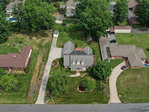 Custom Brick Home 4 Bedrooms 4 Full baths in great neighborhood close to schools, shopping, restaurants, and golf course. Covered rocking chair front porch, 10 ft ceilings in main living area, hardwood floors, large sunroom, laundry room with full bath on main level. Primary suite on main level with dual walk in closets. Second bedroom on main level with 2 more bedrooms and large game room on 2nd floor. Home features ample storage space with walk in attic, eave storage, several closets, and additional storage room located off the oversized 2 car garage. Lots of custom features, great landscaping, sprinkler system, concrete drive with additional parking pad beyond the garage. Storage building and gazebo to convey with the property. Sunroom with skylights not included in the heated finished sq ft.
