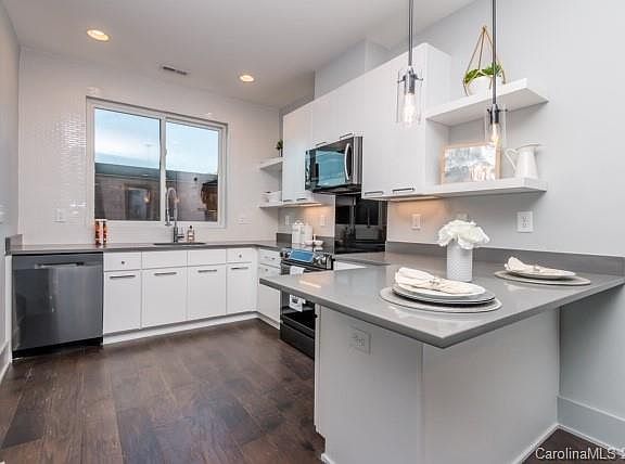 Southend living at its finest! Contemporary design in Charlottes highly sought after location. Move-in ready better than new townhome with brand new carpets. Access to light rail, shops, scoot over to the breweries and newest restaurants- all outside your doorstep. Tons of natural light throughout this open floor plan with over sized windows and Juliette balcony. 13' vaulted ceilings in master bedroom with hardwood flooring, walk in closet and sliding barn door for privacy. Every closet and laundry room has custom shelving. 5 inch hardwoods, stainless steel appliances & Samsung Steam Washer/Dryer. Main level secondary room is perfect for office, work out space or short term crash pad. Backyard patio access. Owner is NC real estate agent.