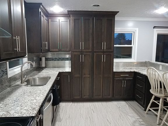 Kitchen has custom cabinets, granite counter tops and tile flooring. The master bathroom has granite counter tops, tile flooring, tile shower and a huge walk in closet. New carpet has been installed in the living room and bedrooms. The neighborhood has low traffic making it safe for the kids to ride their bikes around or to go for a walk or a jog.