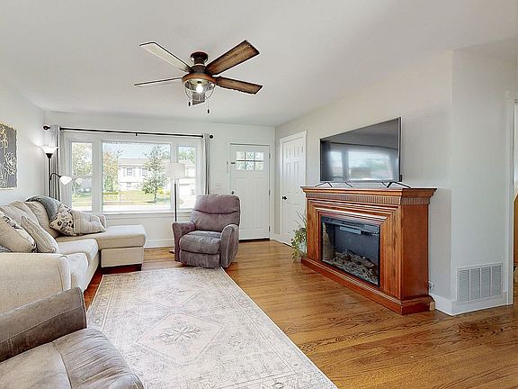 This charming ranch is located in a family-friendly neighborhood, on a quiet street, close to Schools, shopping, restaurants, Menards, Cherry Hill Pool, Parks, and Churches. The main level has hardwood and tile floors. Also on the main level are 3 bedrooms, a full bath, and a half bath. The kitchen features tile floors, granite counters, a tiled backsplash, stainless steel appliances, and a pantry, over/under counter lighting, pull out cabinet shelves, lots of cabinets for storage, new slider off kitchen to deck, new farmhouse style woodwork, solid core doors, ceilings fans throughout, custom closet organizers, 8' high double wide garage door, workshop area with plenty of outlets, 220 volt power, heated, insulated, new driveway(extra wide, extra-long for additional parking, oak flooring throughout. The primary bedroom, located on the first floor has laundry hookups, as well as a laundry room in the basement. The primary bedroom's attached bath includes tile floors and solid surface counters. The partially finished lower level features a non- conforming bedroom, storage area, and laundry room. Outside you'll find a treated wood deck overlooking the yard with a wood privacy fence. Call today for a private showing! Property Improvements: - Total Interior Main Floor Remodel - 2015 - New Garage, Privacy Fence, Driveway - 2018