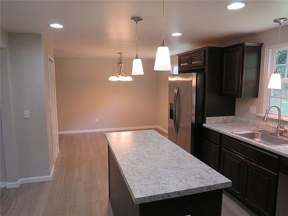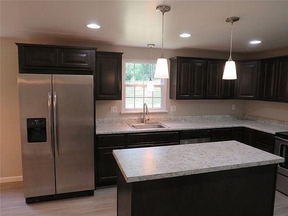 Plenty of counter and cabinet space in the eat in kitchen with espresso cabinetry , stainless appliances and a large center island for additional prep space.
