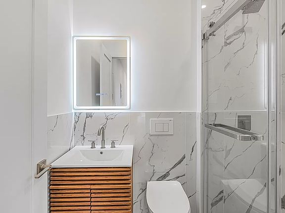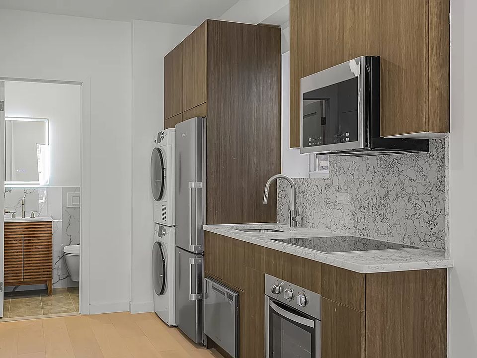 Discover the epitome of modern luxury in this newly renovated 1 bedroom, 1 bathroom apartment, nestled in the vibrant Gramercy/Kips Bay neighborhood. This exquisite home offers condo-level finishes, a convenient in-unit washer/dryer, and a smartphone-controlled intercom system, all within a beautifully restored pre-war building. Living Space: Bright open concept living and dining area Windows in bedroom, living room and bathroom provide natural light Elegant 7" Brazilian hardwood floors throughout Kitchen: Gourmet kitchen with top-of-the-line stainless steel appliances Sleek quartz countertops and custom cabinetry Designer backsplash and plenty of storage space Bedroom: Spacious bedroom with generous closet space Bathroom: Luxuriously appointed bathroom with premium fixtures Elegant marble tiles and modern vanity with ample counter space Video of the unit is available upon request.