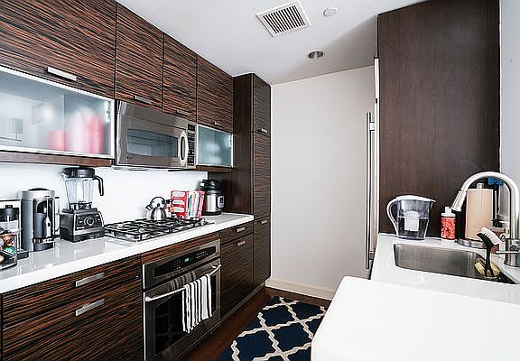 LUXURY, SPACIOUS, SUNNY ONE BEDROOM IN A FULL SERVICE DOORMAN BUILDING. IN UNIT W/D. APT COMES WITH A STORAGE UNIT. TENANT OCCUPIED SO SHOWING ONLY VIA OPEN HOUSE BY APPOINTMENT. PLEASE EMAIL MICHAEL SIN FOR AN APPOINTMENT. VIDEO AVAILABLE UPON REQUEST. THERE IS A BROKER'S FEE. Apartment Features: - Open kitchen with Macassar ebony cabinets, etched glass cabinetry, crystalline marble counter tops, Sub Zero refrigerator, two-drawer dishwasher - Bedroom has city quiet windows - Dark stained plank hardwood floors - In-unit Washer Dryer - The tenant also has the use of a 20 sq. ft storage unit (6 x 4 x 8) Building Features: - 24/7 doorman and concierge - Furnished outdoor terrace with BBQ grills and outdoor seating - Landscaped roof desk with great views of the city - Fully equipped fitness center - Residents lounge - Close to many restaurants, supermarkets, cafes, shops, bars, salons, parking garages, parks, gyms and public transportation hubs. Note: photos are of previous tenant. No pets unfortunately.