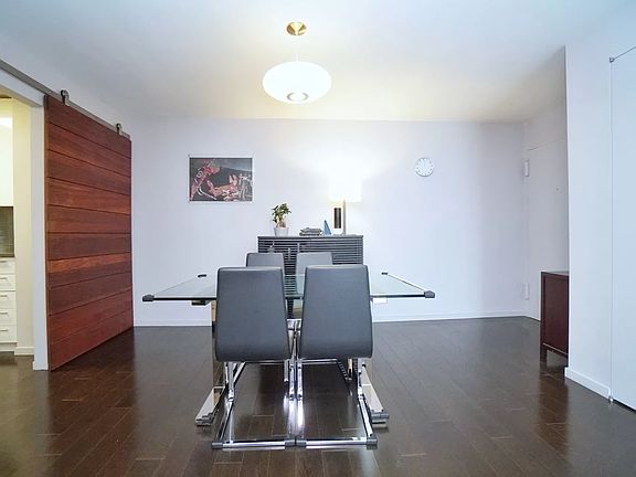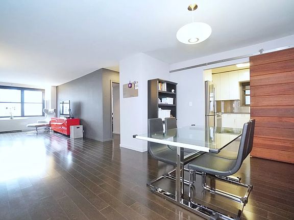 Welcome to 14c in the world class Harridge House. This open concept, one bedroom hosts beautiful flooring and a sleek modern kitchen with a gorgeous barn door, dining area and huge living room. Tons of closet space including a walk in closet. This elevator building has a full time doorman and concierge as well as a gorgeous private garden, roof deck and parking garage. Maintenance includes gas, heat, water, and electricity as well as your taxes and maintenance. Renovated laundry rooms, storage and bike storage is available. Pied a Terre is permitted. Located near the 4,5,6,n,q,r,w,f,m and e trains, Trader Joe's and plenty of shopping.