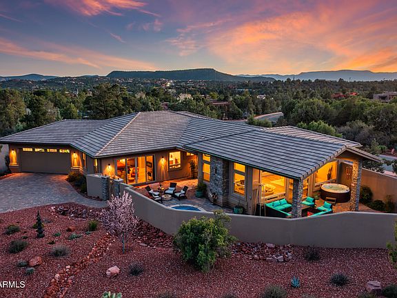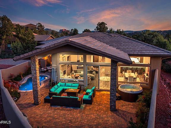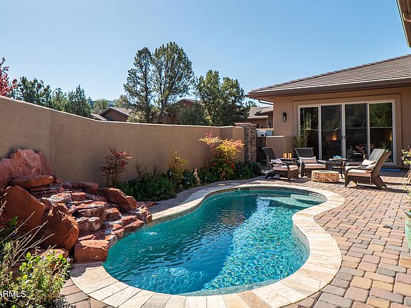 The flow of the house is Zen like and relaxing and is built with a 5 star quality that holds a quiet within that embraces one during the day. It is true serenity with pool side living and nature all around . End the day with a hot tub to relax in under the stars and the magical lit skies of Sedona. There is no need to go anywhere when home here! This home won't last as is move in ready , no remodels needed, instead just take in the views and relax you are HOME in this slice of heaven.