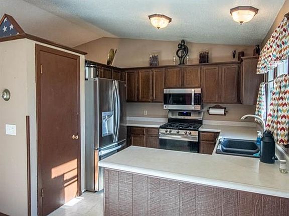 - FEATURES: Ceiling Fan, Disposal, Smoke Alarm, Vaulted Ceiling, Fireplace, Garage Door Opener