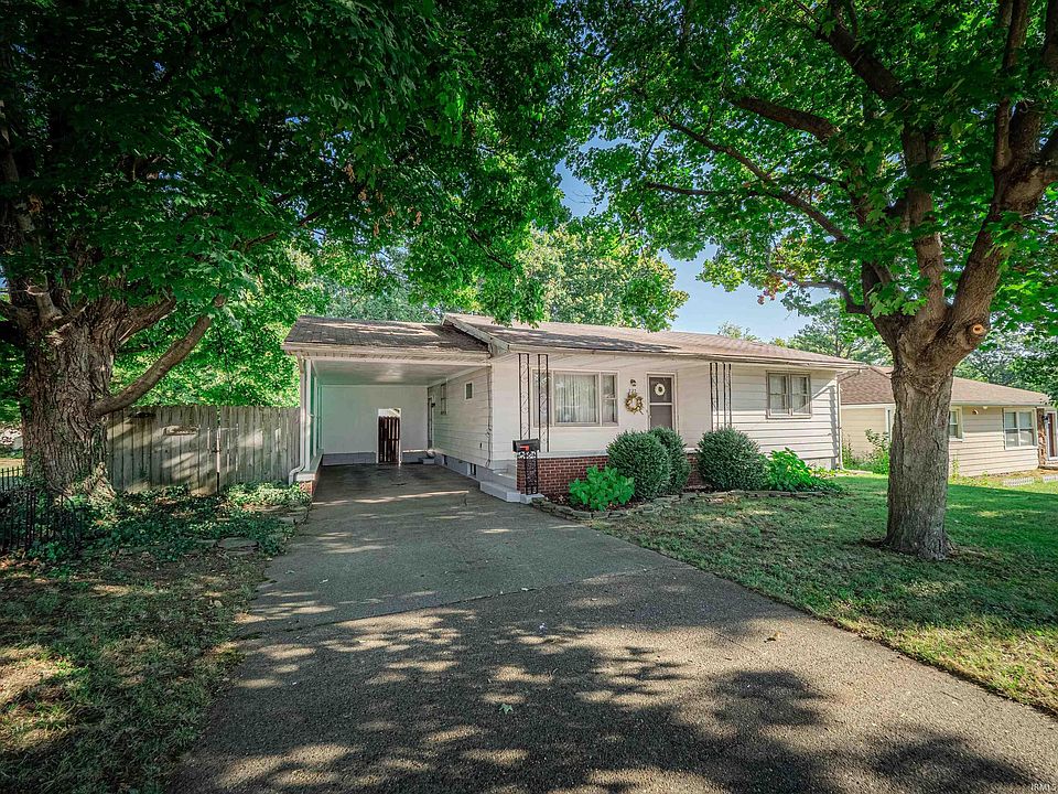 LARGE FENCED BACKYARD on OVER QUARTER ACRE LOT IN TOWN! TWO BEDROOM 1 STORY HOME with UNFINISHED BASEMENT & FRESH INTERIOR PAINT! The mature trees, fresh painted entry porch, back steps and block foundation+entry door all greet you with a welcome smile from this long standing owner of 45 years! The front door opens into a lovely living room, followed by hall to the 2 bedrooms, split by a full bath, and a hall closet with open laundry shoot to basement. Then, the dining room opens to the kitchen with fridge, smooth top electric range/oven, porcelain sink with cabinets both sides and a breakfast bar with stools+easy access to back door and basement stairs! This home is being offered by seller in its as-is condition WITH A NON WORKING GAS FURNACE, NON WORKING CENTRAL AIR CONDITIONING UNIT AND AN OLDER OUTDATED FUSE BOX the seller would like the buyer to have all replaced new after closing by the the new buyers at their expense. She has priced the home for its as-is value taken these expenses into account off what the home would be worth had these things been working in the home based on comparable sales. The backyard also has a dog kennel, rod iron swing, rod iron table with matching chairs, shed, and more mature trees that make a most enjoyable exterior to entertain and make your own. The shed floor could use some work but can be made nice again with a little elbow grease and few hours of labor as they say. There is a convenient attached carport that has a gate to backyard and side door into kitchen with door down into basement where you will find the washer and electric dryer hookups. Plus, there is a stand up shower and extra toilet down that you can bring back to life if wish to put into operation. A UNIQUE OPPORTUNITY FOR THE RIGHT BUYER!
