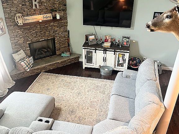 Natural gas logs and grill hook-up. Two units one up stairs one down stairs. Catheral ceiling hardwood and tile through out house. Large front porch and 10x20 back deck. Granite counter tops in kitchen. Real hardwood floors. Great Mountain Views.